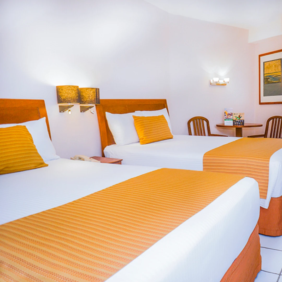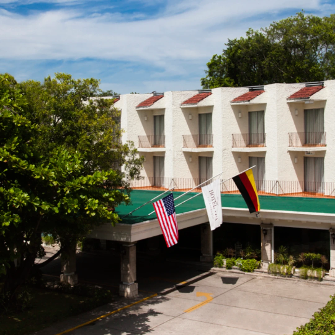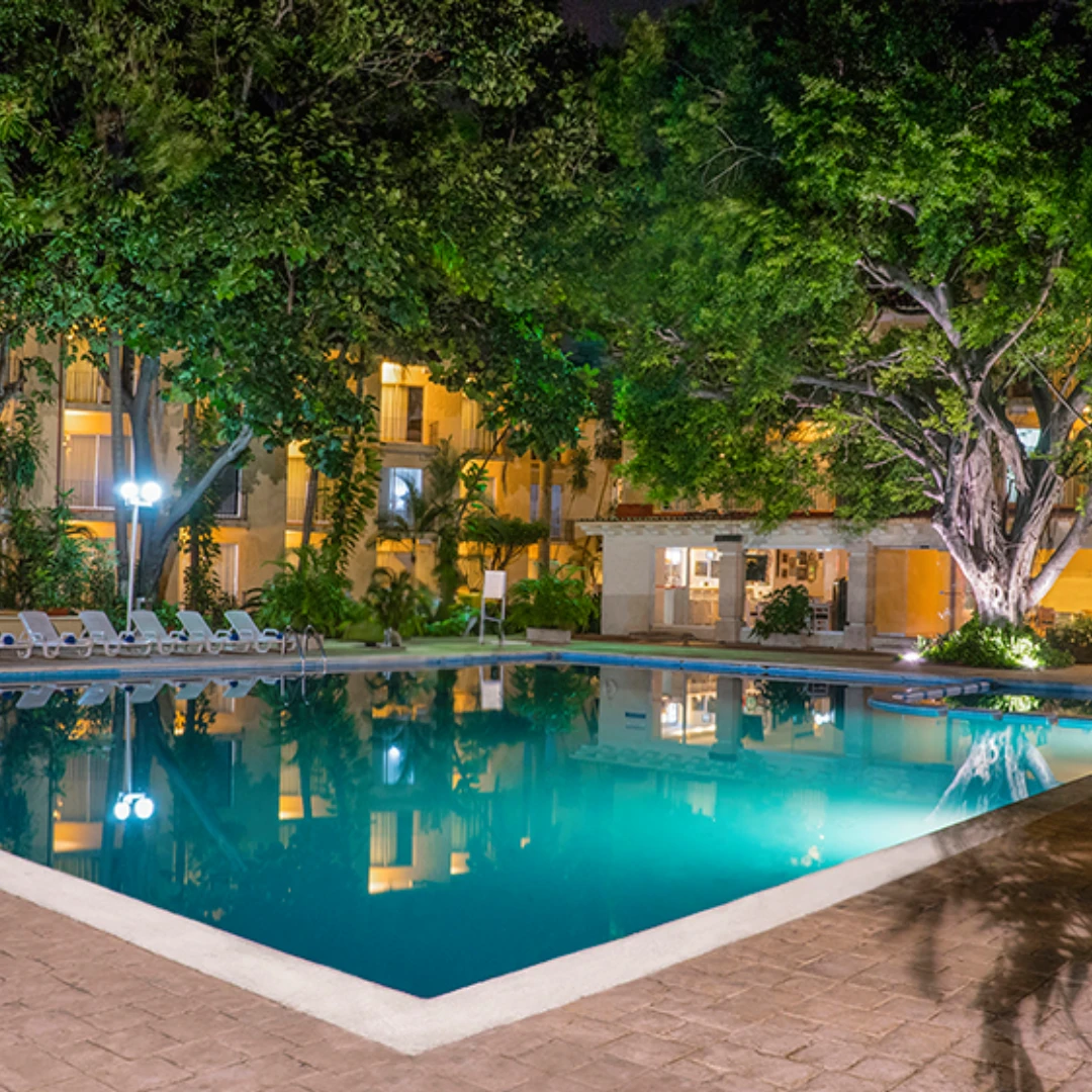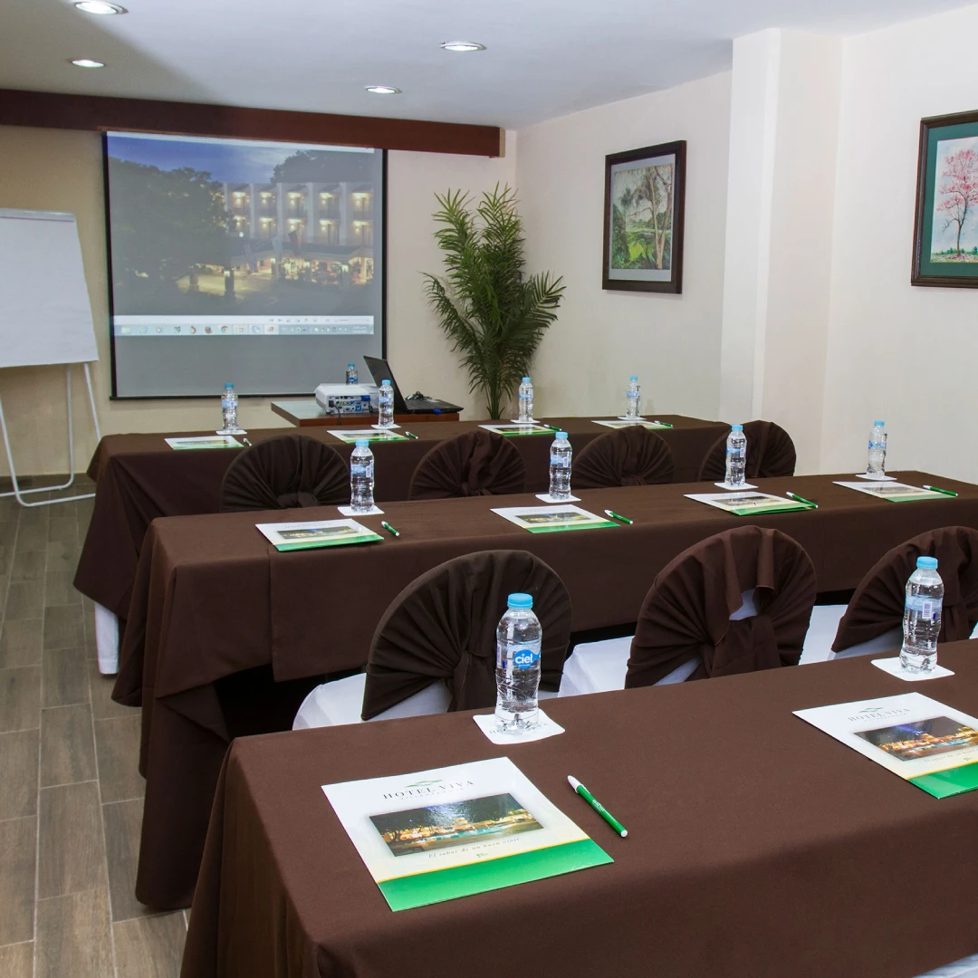El logo muestra "Hotel Viva Villahermosa" con dos hojas verdes estilizadas arriba del texto.